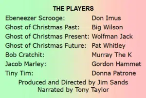 Although it is well written and dramatically produced, you can’t help but chuckle at Don Imus as the grouchy Scrooge, and Wolfman Jack doing Charles Dickens.
