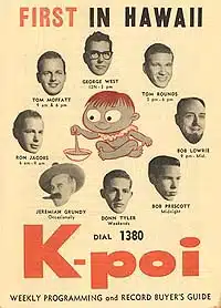 K-POI jocks hung from cars suspended from cranes, broadcast underwater from a glamorous Waikiki pool, and competed in Drum-A-Thons, Pool-A-Thons, Insult-A-Thons, donkey basketball games and endless stuff that caught the fancy of the kids turning on to Elvis, Frankie, Ricky, Fabian, etc.